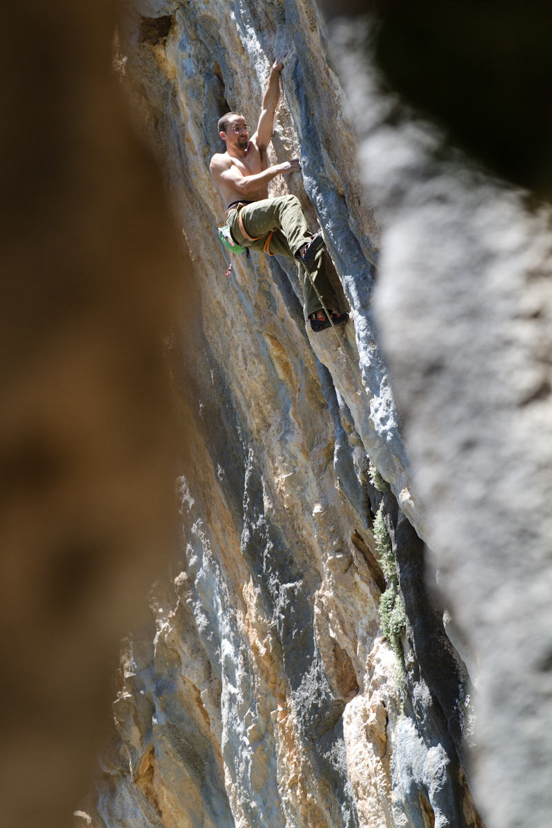 Την τελευταία βδομάδα έχει βάλει αρκετή ζέστη στο Rodellar και αυτό είναι το μόνο μέρος που μπορείς να σκαρφαλώσεις εδώ, αργά το απόγευμα. Στο Rodellar επαναλαμβάνω τις διαδρομές, Sindrome de Vilafranca-8a, Palomera μια διαδρομή του Renaud (power endurance). Στην Gran Boveda επαναλαμβάνω Pinza Time-7c+ από τον Tomas και Andele Guey-7c+ από τον Novato, Delocalization-8a και Les cadres regenerent-8a.